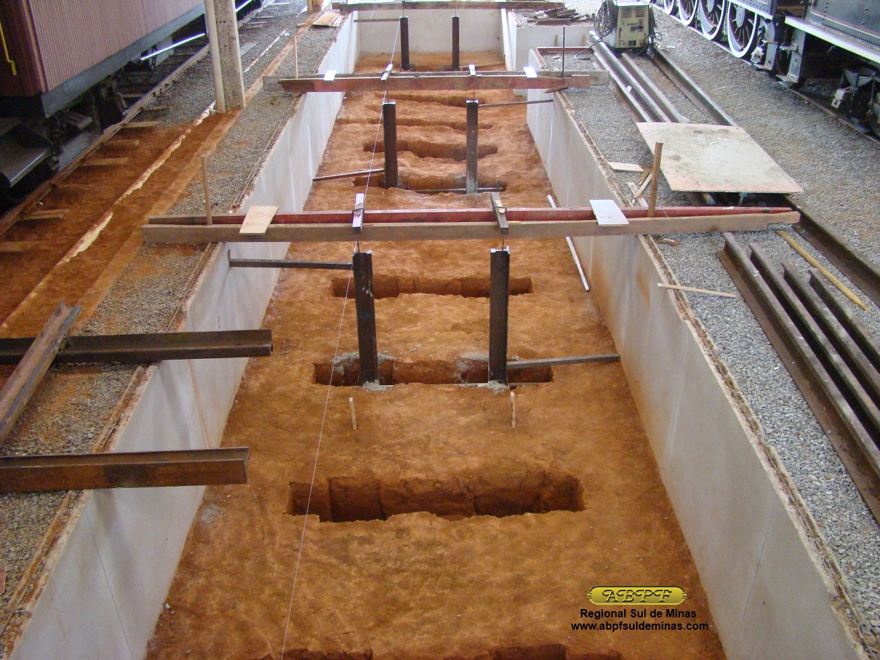 Para manutenção do material rodante, é essencial ter acesso a parte de baixo dos veículos, além de infra-estrutura para remoção de rodeiros, para tal, foi construída uma vala de manutenção: