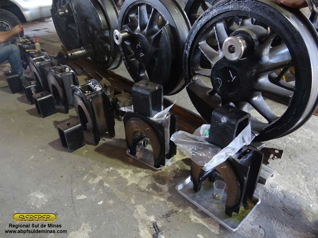 Como parte do sistema de tração da locomotiva, temos as caixas de mancais, que, como o nome diz, “abrigam” os mancais dos eixos das locomotivas. No caso das locomotivas a vapor do Brasil, elas não possuíam rolamentos, dessa forma, o contato do eixo com o “corpo” da locomotiva é feito através de um mancal.