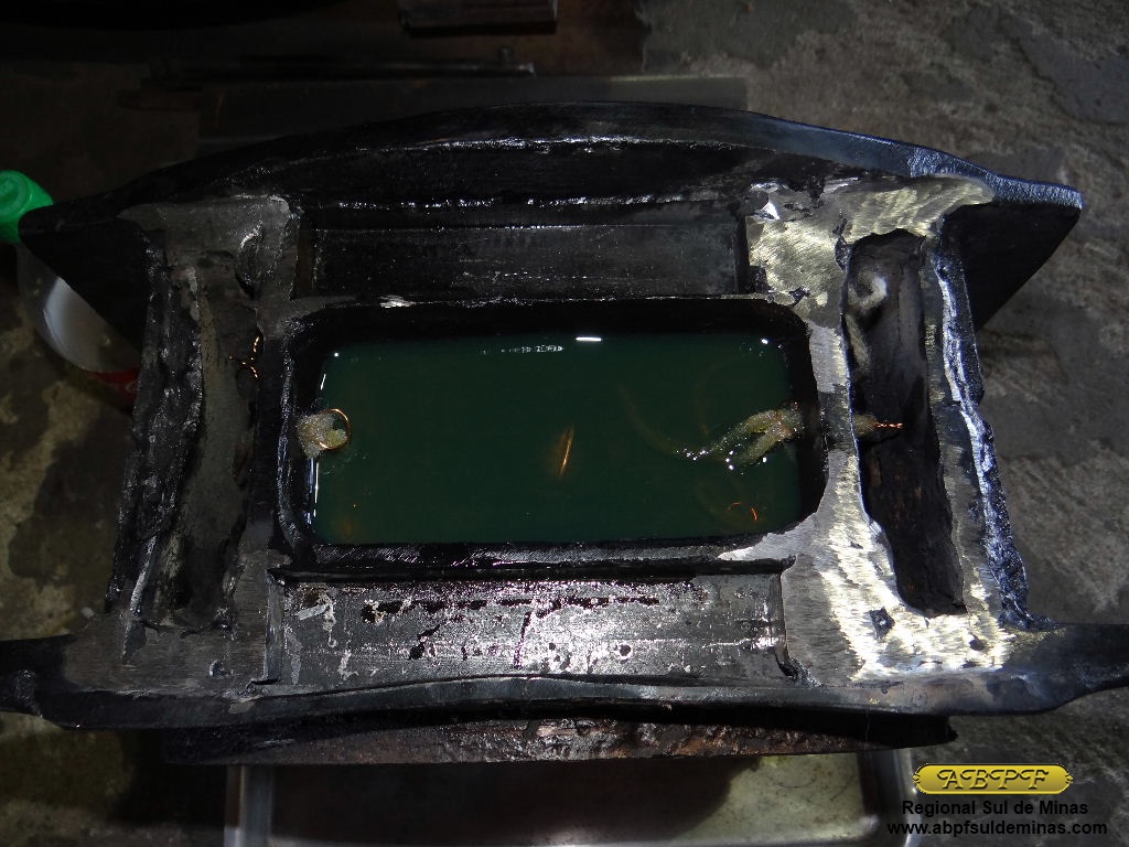 Como mostramos anteriormente (no artigo que pode ser visto clicando-se aqui) foi feita uma limpeza inicial das caixas com o uso do maçarico durante a desmontagem da locomotiva.