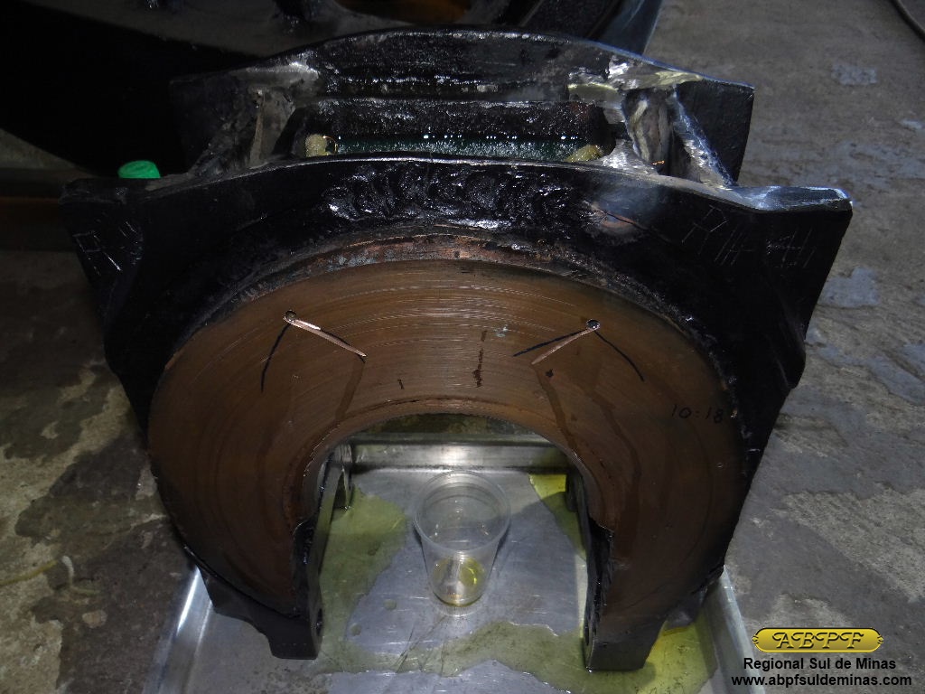 A próxima etapa foi testar a vazão do óleo, onde é necessário verificar se o mesmo não está com, a vazão muito rápida ou muito lenta, para se ter certeza que toda a cubação, cunha, telha e principalmente o mancal serão lubrificados de forma apropriada: