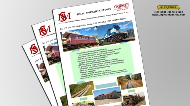 No final do mês de dezembro elaboramos o primeiro relatório anual da Regional Sul de Minas, diagramado na forma de jornal, recebendo o título de “RSM – Informativo”. Nele expusemos as principais ações da Regional Sul de Minas ao longo do ano de 2017 com um pouco mais de detalhes e informações.