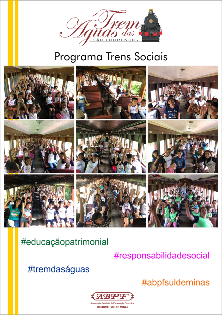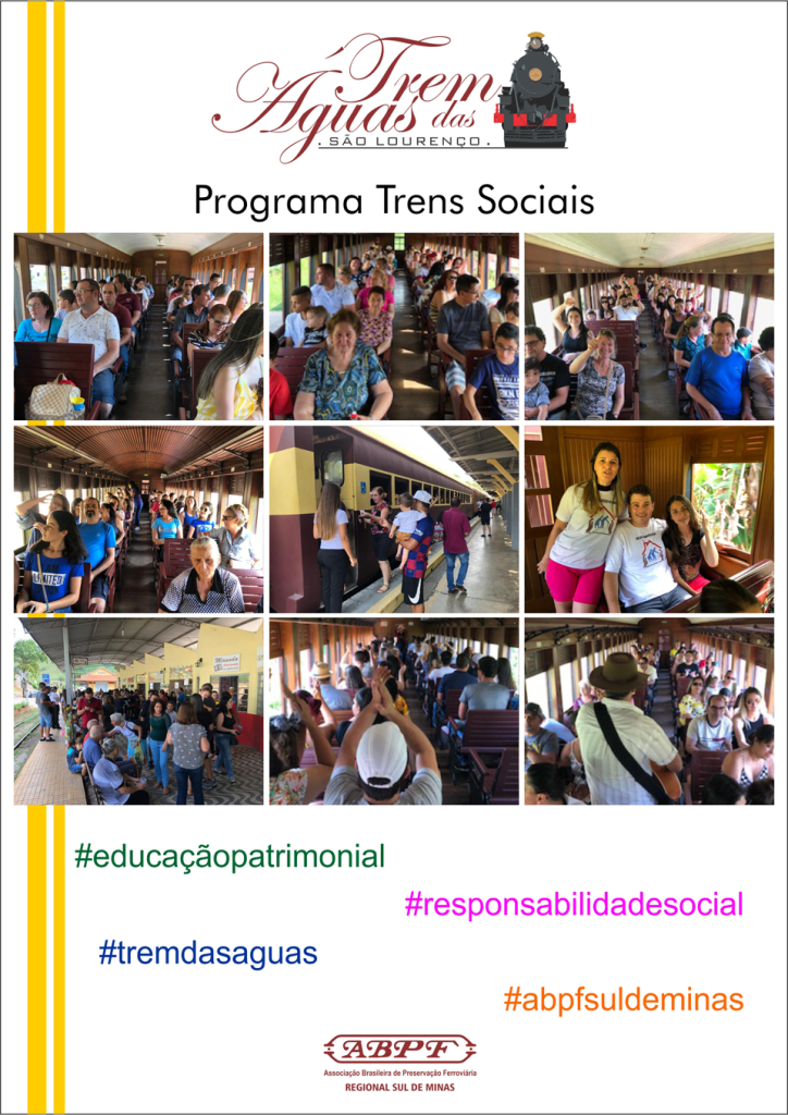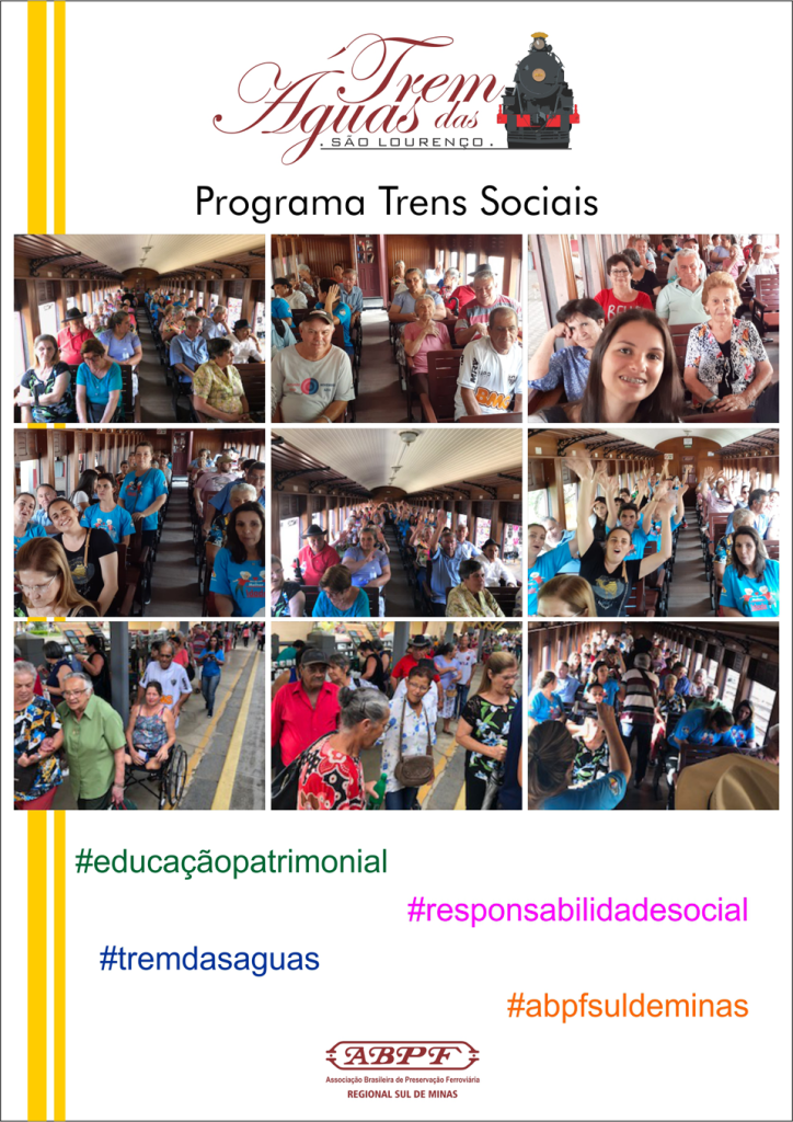 Foi um sucesso o Trem Solidário em prol do Lar São Francisco de São Lourenço! Domingo, dia 10/11/2019, às 14h30 um passeio especial em prol do Lar São Francisco de São Lourenço aconteceu e foi um sucesso de público! Ao todo, 364 bilhetes foram vendidos e a renda foi toda revertida para a instituição, sendo o passeio de trem 100% subsidiado pela ABPF Regional Sul de Minas, dentro de seu programa de “Trens Sociais”, sem custo algum para a instituição ou órgãos públicos.