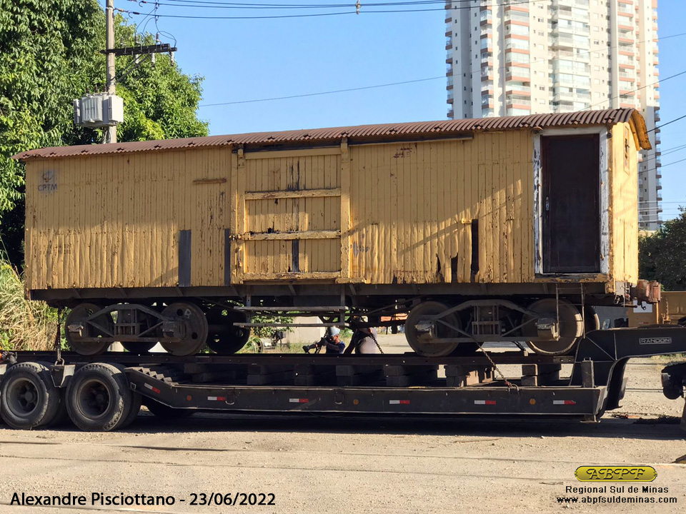 Aconteceu ontem a operação de carregamento do antigo vagão tipo fechado, com caixa de madeira, originário da São Paulo Railway – SPR, depois Estrada de Ferro Santos a Jundiaí – EFSJ. Sua última função foi nos trens de serviço da CPTM que o retirou de serviço devido a sua idade já bastante avançada, ficando o mesmo estacionado por alguns anos no pátio das oficinas da Lapa.