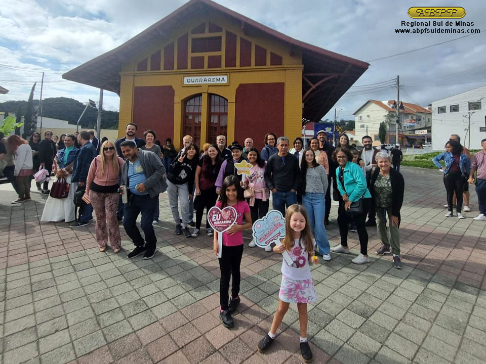 Mais um passeio do projeto “Um novo olhar sobre Guararema” aconteceu no sábado, dia 25/05/24, às 14:30h: 33 moradores que se inscreveram no projeto realizaram o passeio de trem de forma gratuita, com cortesias fornecidas pela associação dentro do seu programa de “Trens Sociais”, onde a ABPF procura contemplar a comunidade local e as instituições de relevância dos municípios onde atua com passeios gratuitos e/ou como forma de arrecadação de doações para instituições filantrópicas afim de se incentivar a educação patrimonial no município e promover o acesso à este meio de transporte, sendo um resgate desse importante capítulo da história. O custo dessas viagens sociais é 100% subsidiado pela ABPF, não havendo nenhum ônus para as entidades ou órgãos públicos. Este já é o terceiro ano consecutivo onde a ABPF é parceira da prefeitura de Guararema nesse projeto.