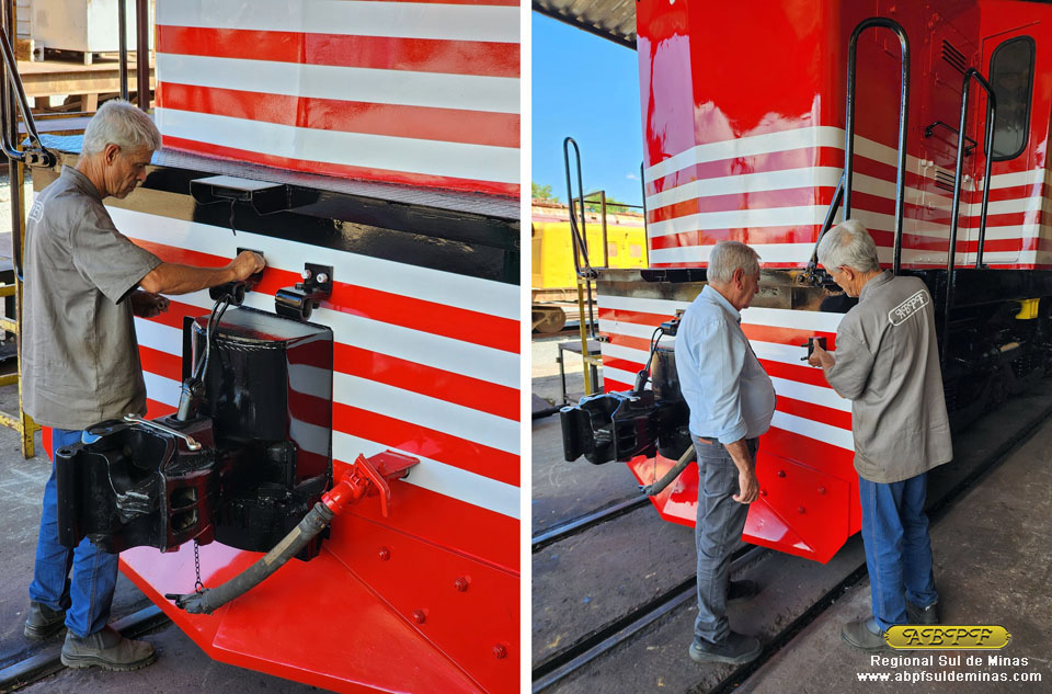 Com muita dedicação, empenho e habilidade o problema foi resolvido e o motor diesel recolocado em funcionamento. Uma série de ajustes ainda foi necessária para deixa-lo em perfeitas condições, tendo alguns outros componentes sido substituídos. Resolvida essa questão, foi a vez do compressor que gera o ar comprimido para o sistema de freios apresentar avaria, sendo então necessário substituí-lo por outro. Em seguida o gerador auxiliar também apresentou avaria e foi necessário desmontá-lo e recuperá-lo inteiramente.