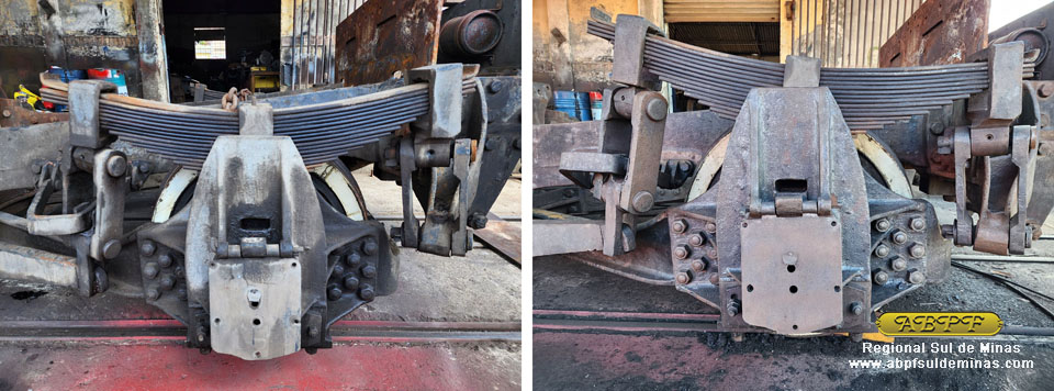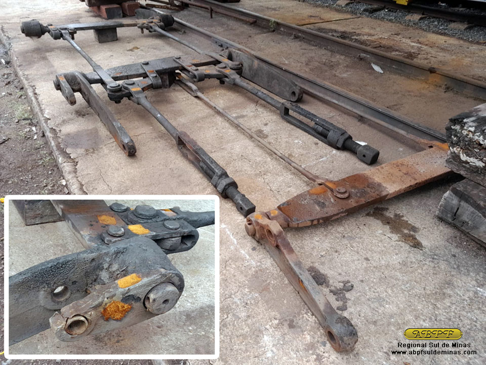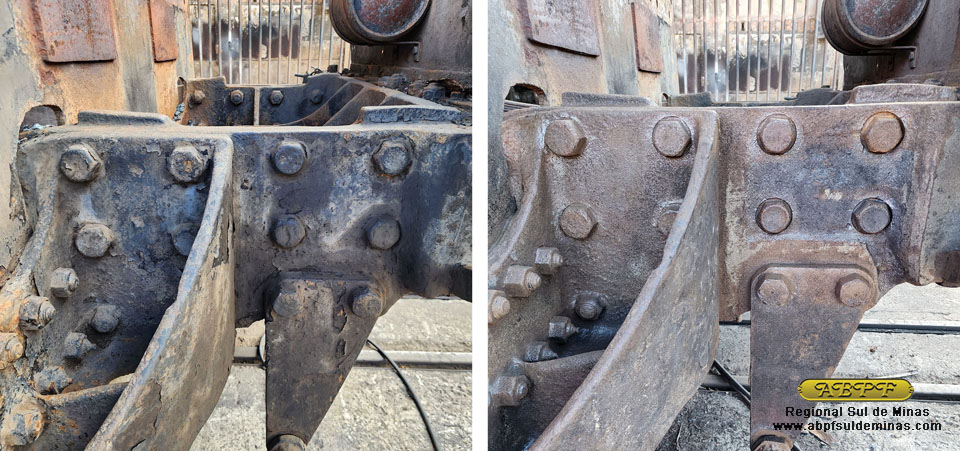 – Aspectos do antes e depois da limpeza do jogo de arrasto da locomotiva.