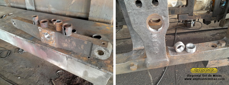 – Novas buchas já vão sendo confeccionadas e montadas. Detalha das buchas antigas acima da peça.