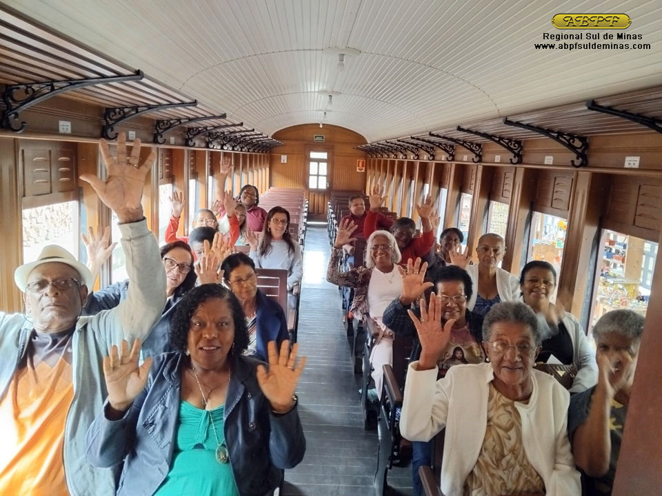 Na quarta-feira, dia 16/04/25, às 10h recebemos idosos atendidos pelo CRAS de Carmo de Minas/MG acompanhados de monitores, que puderam realizar gratuitamente o passeio de trem, totalizando 22 pessoas.