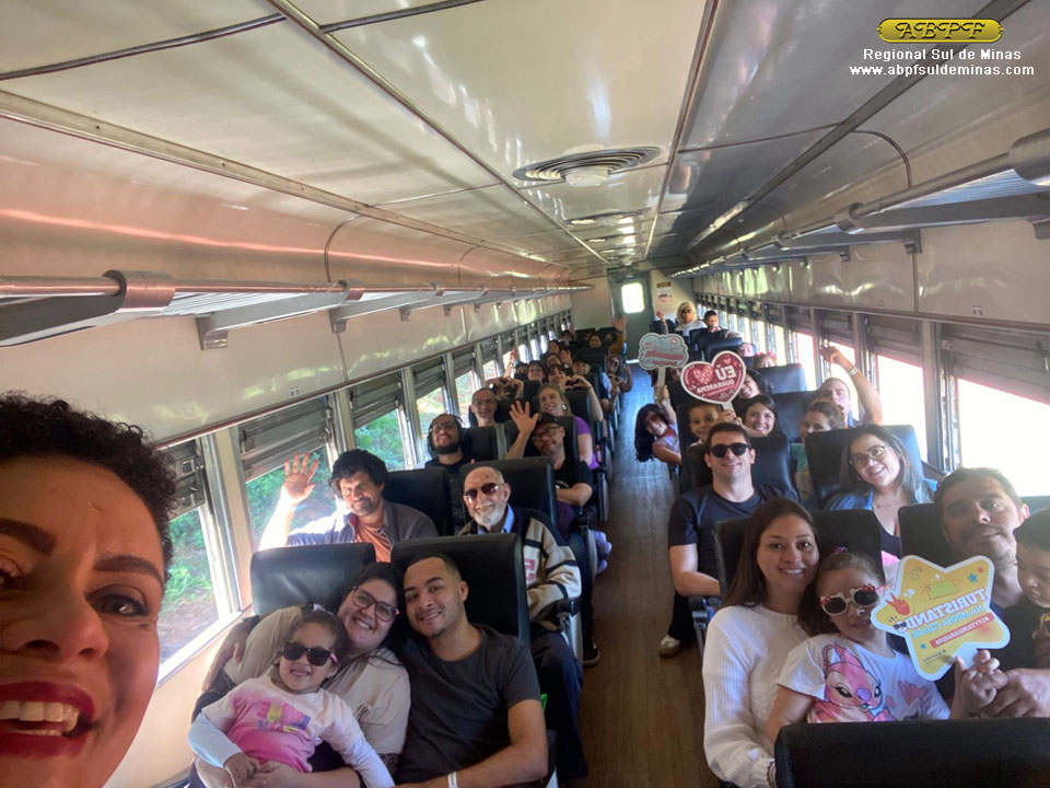 Na quarta-feira, dia 21/05/25, às 10h recebemos idosos membros do programa de Serviço de Convivência e Fortalecimento de Vínculos da terceira idade, desenvolvido pelo CRAS – Centro de Referência de Assistência Social de Olímpio Noronha/MG acompanhados de monitores, que puderam realizar gratuitamente o passeio de trem, totalizando 50 pessoas.