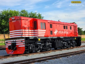 terminal no Porto de Santos. A locomotiva foi então reformada e pintada praticamente no esquema da primeira pintura da FEPASA, em azul e branco.