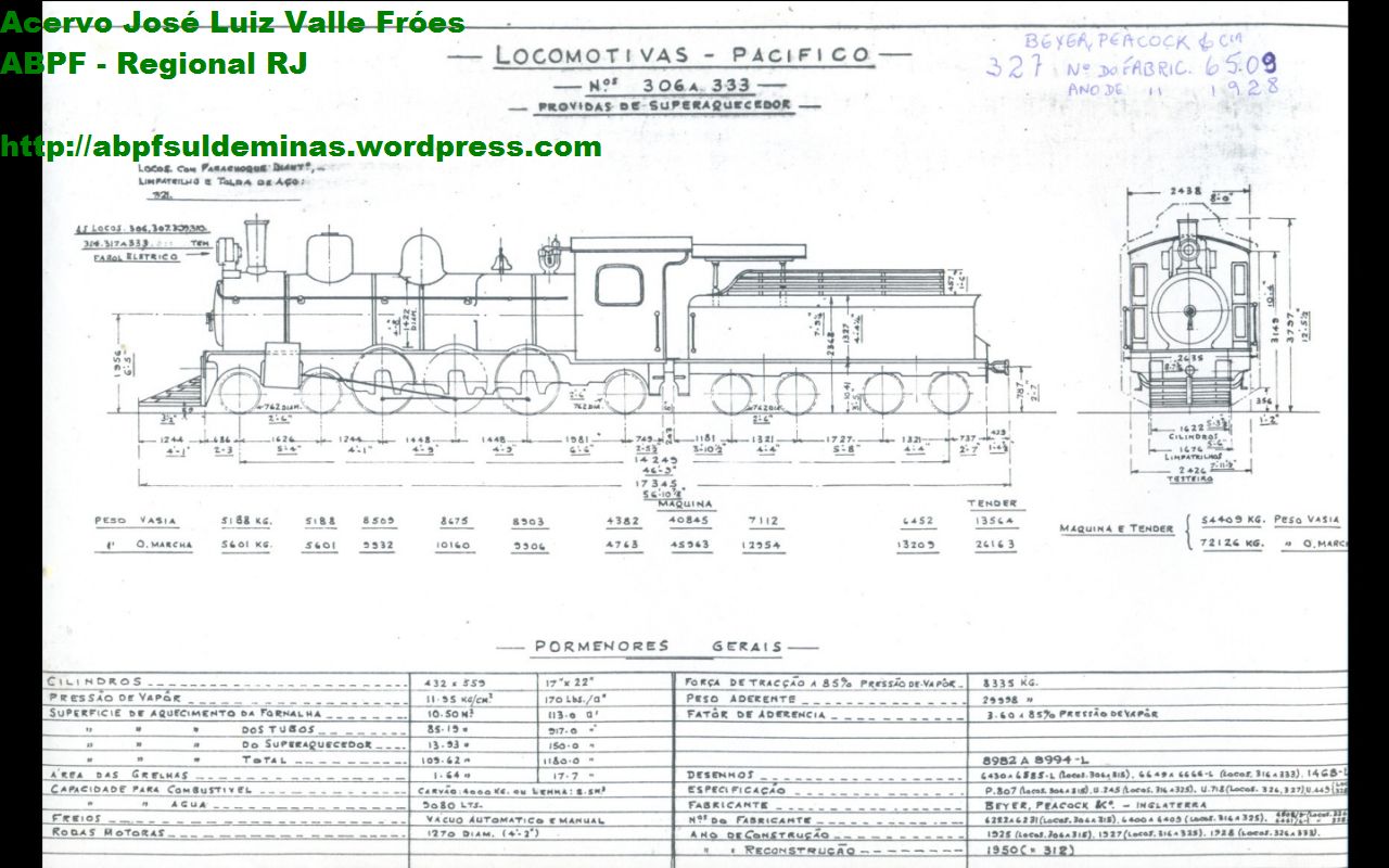 • 08 locomotivas nº. 326 a 333, fabricadas em 1928.