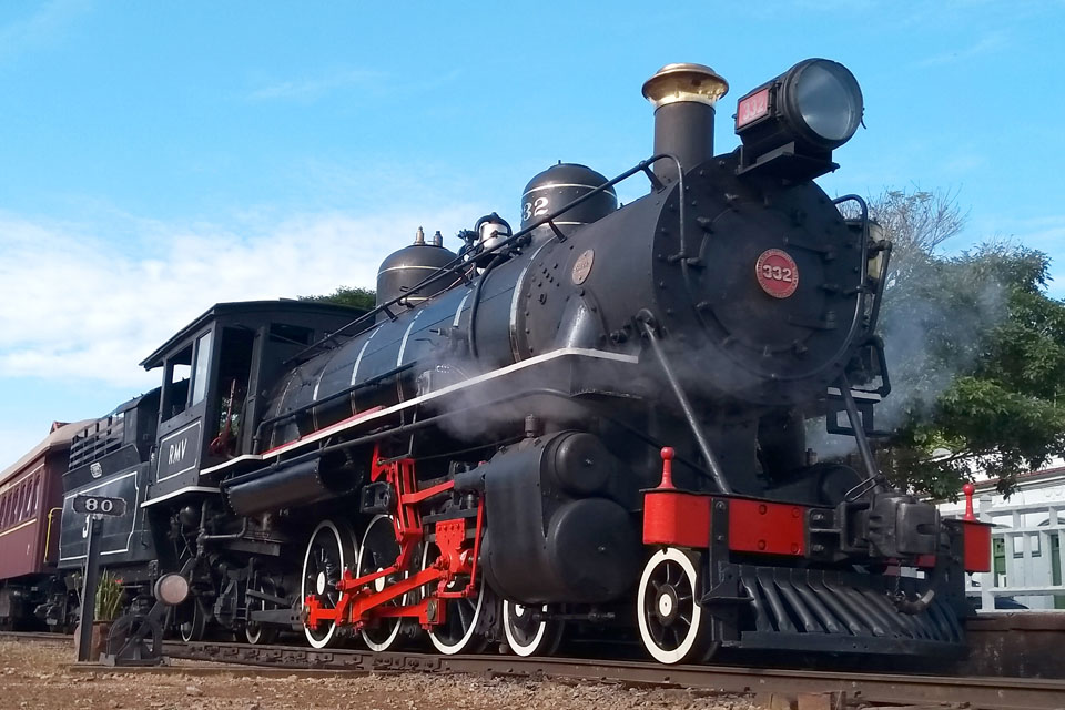 A locomotiva 332 é uma Baldwin Pacific (rodagem 4-6-2) construída em 1925 para a Estrada de Ferro Oeste de Minas, que mais tarde passou a ser Rede Mineira de Viação e na sequência VFCO (Viação Férrea Centro Oeste).