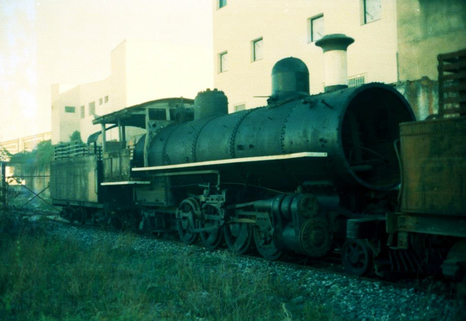 A locomotiva aguarda restauração nas Oficinas de Cruzeiro.
