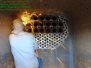 Após o trabalho de remoção do superaquecedor foram iniciados os trabalhos para remoção dos tubos menores da caldeira da locomotiva 522, que vão ser todos substituídos.